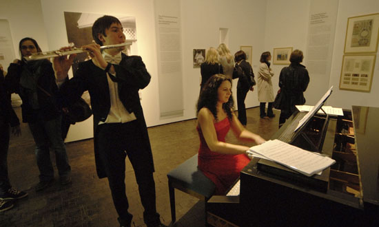 Studenten der Akademie für Tonkunst, Darmstadt musizieren in der Ausstellung auf dem Olbrich-Flügel