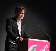 Ralf Beil bei der Eröffnungsrede der Schau A HOUSE FULL OF MUSIC. Foto: Marcus Kaufhold © Institut Mathildenhöhe Darmstadt.