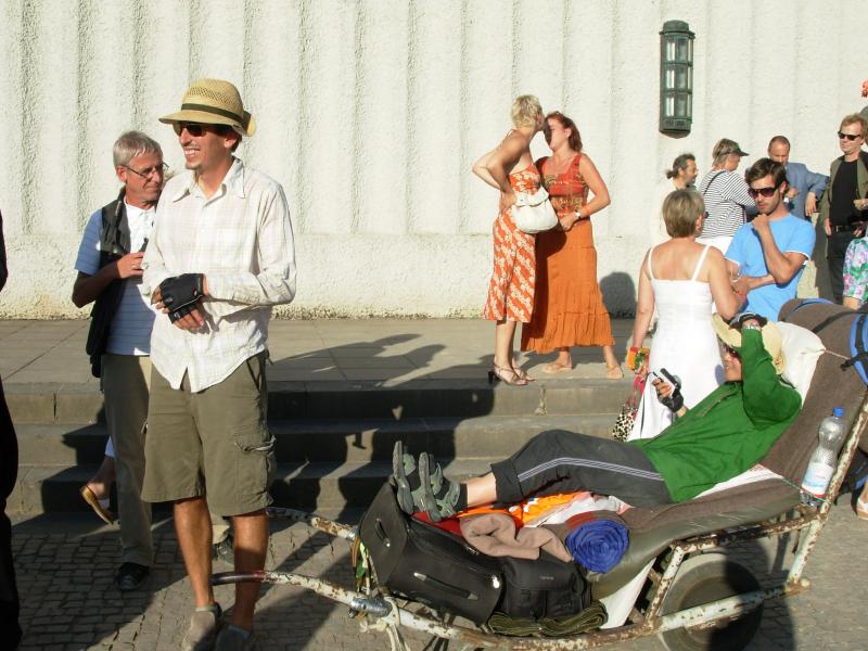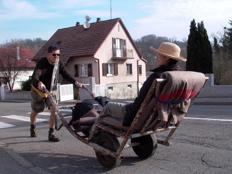 „Mathilda is calling“: Der Schweizer Performancekünstler San Keller (*1971) und die südkoreanische Performerin Su Yung Park (*1972) nehmen es wörtlich und kommen. Mit einem alten Gepäckwagen. Über 500 Kilometer Wegstrecke. Tag und Nacht schieben sie sich in ihrer Reiseperformance „Come Together“ gegenseitig voran, bis sie die Mathildenhöhe erreichen. Der Gepäckwagen bleibt bis zu einer nächsten Reiseeinladung als „Aktionsobjekt“ im Foyer des Ausstellungsgebäudes.